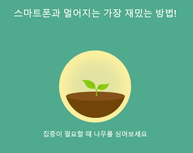 작동 원리는 간단하다. 본인이 원하는 집중 시간을 설정하고 그 시간 동안은 휴대폰을 사용할 수 없다. 설정한 시간 동안 휴대폰을 사용하면, 자라고 있는 나무가 시들어 죽게 된다. 설정한 시간 동안 휴대폰을 사용하지 않는 다면 가장 오른쪽 사진처럼 자란 나무가 쌓인다. 사용자는 활동의 카테고리를 설정할 수 있고 이후 카테고리 별 집중 시간을 막대그래프로 일간/주간/월간/연간 단위로 확인할 수 있다.